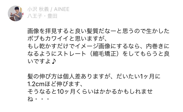 もし乾かすだけでイメージ画像にするなら、内巻きになるようにストレート(縮毛矯正)をしてもらうと良いですよ♪
