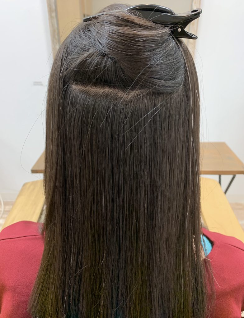 beforeは縮毛矯正履歴があり、毛先は大分ダメージしているのでコンディションを整えていきます。