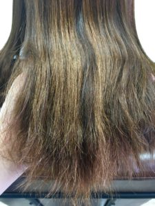 縮毛矯正とデジパーのダメージの蓄積により毛先が硬化してしまっています。